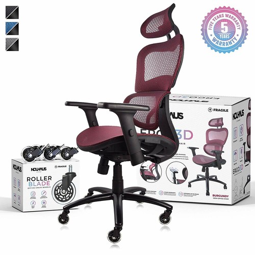 Amazon Com Nouhaus Ergo3d Ergonomic Office Chair Rolling Desk Chair With 4d Adjustable Armrest 3d Lumbar Support And Blade Wheels Mesh Computer Chair Office Chairs Executive Swivel Chair Burgundy Home